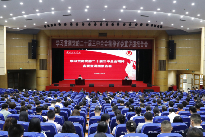 本網訊 9月5日,學習貫徹黨的二十屆三中全會精神省委宣講團報告會在學校學術會議中心一號報告廳舉行。我院全體院領導、全體中層干部、黨支部書記、學校年輕干部理想信念強化研修班學員參加會議。湖北經濟學院黨委書記高義勇主持報告會。