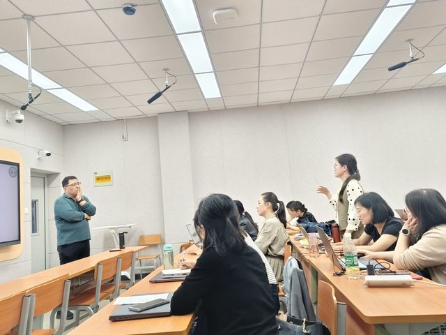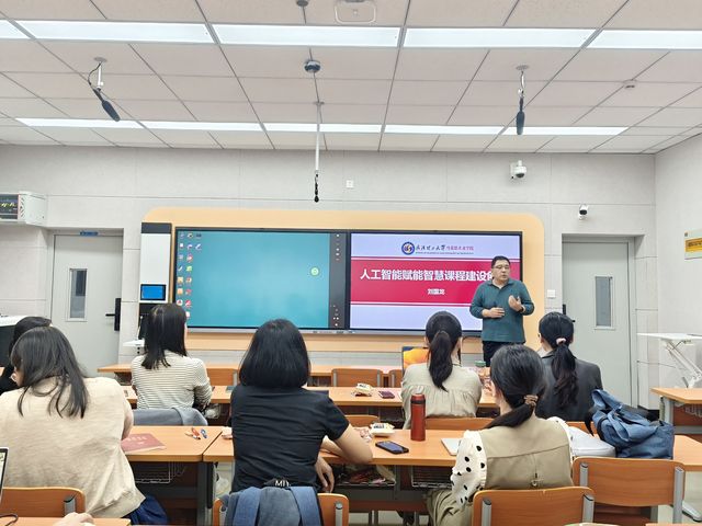 活動(dòng)伊始,學(xué)院特邀武漢理工大學(xué)劉國龍教授作“人工智能賦能智慧課程建設(shè)創(chuàng)新工作坊”的主題報(bào)告,劉教授圍繞數(shù)智時(shí)代教學(xué)的背景、賦以何能課程顯成效、如何賦能驅(qū)動(dòng)教學(xué)、建設(shè)一流智慧課程共四個(gè)方面展開講解。他提出基于大語言模型的智能對(duì)話式學(xué)習(xí),能有效提升教學(xué)互動(dòng)性。建議教師們深度融合AI教學(xué)工具,堅(jiān)持持續(xù)性的知識(shí)傳授、能力培養(yǎng)和價(jià)值引領(lǐng)的有機(jī)統(tǒng)一,探索跨校協(xié)同的知識(shí)圖譜共建機(jī)制,促進(jìn)教學(xué)資源共享。緊接著,超星集團(tuán)課程經(jīng)理周銳鋒介紹分享了知識(shí)圖譜的創(chuàng)建,AI助教的應(yīng)用、智慧課程優(yōu)秀案例,并進(jìn)入智慧課程實(shí)操和答疑環(huán)節(jié)。整個(gè)工作坊活動(dòng)持續(xù)3個(gè)小時(shí),老師們現(xiàn)場(chǎng)同步操練,積極交流,研討氛圍熱烈。