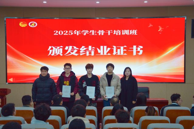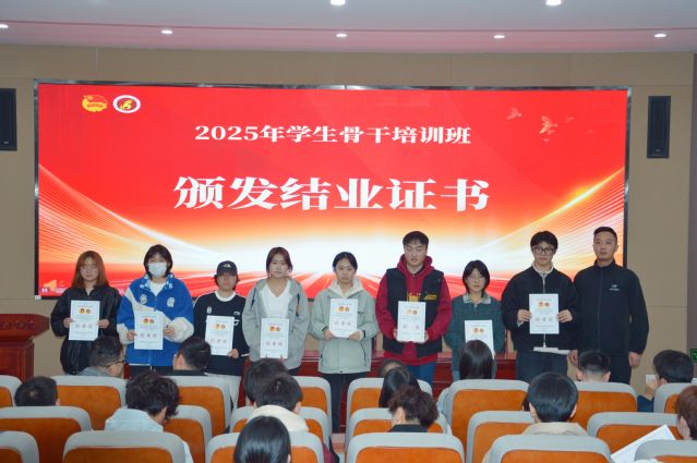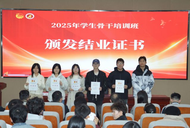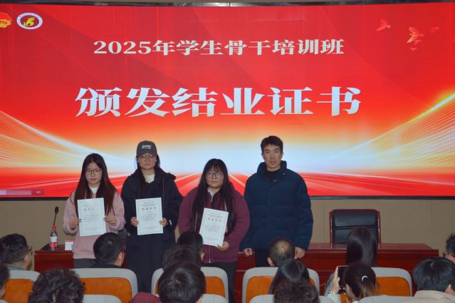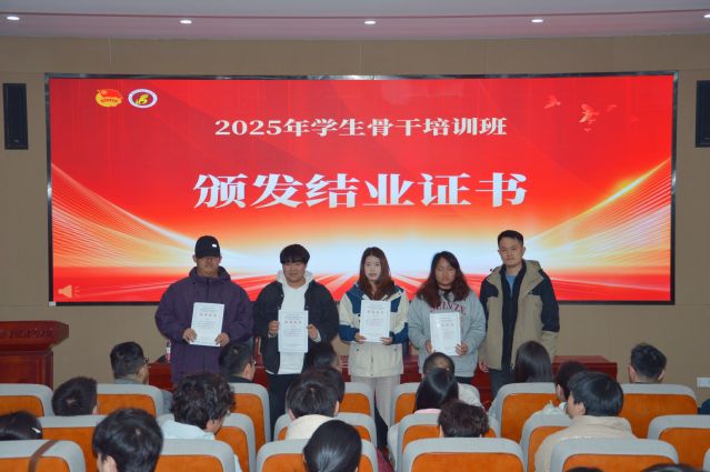 授課結(jié)束后舉行了結(jié)業(yè)儀式。各學(xué)生組織指導(dǎo)老師為各組織學(xué)員頒發(fā)結(jié)業(yè)證書,各系團(tuán)總支老師為各系學(xué)員頒發(fā)結(jié)業(yè)證書,祝賀各學(xué)生骨干順利結(jié)業(yè)。