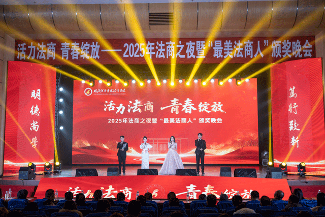 本網(wǎng)訊(通訊員 趙云飛 孫馨)活力法商,青春綻放。11月26日晚,學(xué)院在大學(xué)生活動中心一號報告廳舉行2025年法商之夜暨“最美法商人”頒獎晚會。湖北經(jīng)濟(jì)學(xué)院黨委常委、副校長、法商學(xué)院董事長何慧剛教授,學(xué)院全體院領(lǐng)導(dǎo),各職能部門負(fù)責(zé)人,各系黨總支書記、副書記、系副主任,全體輔導(dǎo)員、班主任,獲獎學(xué)生代表及各班學(xué)生代表歡聚一堂,共同見證這場青春盛典。大會由傳媒與藝術(shù)設(shè)計系播音與主持專業(yè)韓京琪、吳沁雯、邱鳴響、平焯文四位同學(xué)主持。