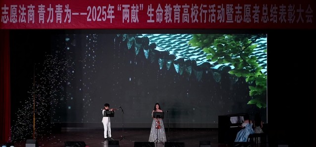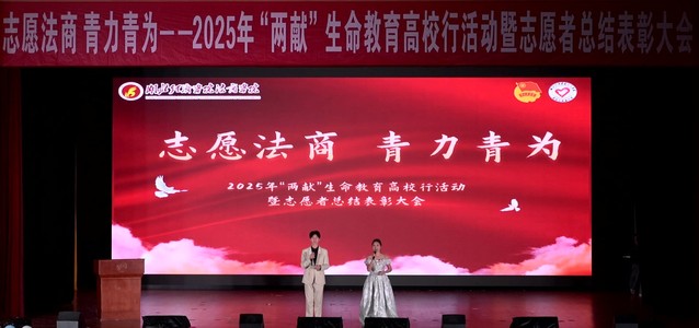 本網(wǎng)訊(通訊員 魏子瑩)“志愿法商,青力青為”。12月3日晚,2025年“兩獻(xiàn)”生命教育高校行活動(dòng)暨志愿者總結(jié)表彰大會(huì)在大學(xué)生活動(dòng)中心一號(hào)報(bào)告廳圓滿舉行。武漢市紅十字會(huì)辦公室主任戴杰,武漢市紅十字事業(yè)發(fā)展中心捐獻(xiàn)科副科長(zhǎng)邸冀東,憨逗公益庇護(hù)工場(chǎng)王慧老師、陳詩(shī)琪老師、羅澤雅老師,武漢紡織大學(xué)外經(jīng)貿(mào)學(xué)院、武漢設(shè)計(jì)工程學(xué)院優(yōu)秀志愿者代表受邀參加,學(xué)院黨委副書(shū)記、副院長(zhǎng)楊宏斌,團(tuán)委副書(shū)記周志,各系團(tuán)總支書(shū)記、副書(shū)記及師生代表齊聚現(xiàn)場(chǎng),回顧志愿路上的赤誠(chéng)與堅(jiān)守,表彰奮進(jìn)中的榜樣與力量,共同奔赴這場(chǎng)屬于志愿者的溫暖盛會(huì)。大會(huì)由工商23401班汪嘉煒、法學(xué)24404班程澤霖兩位同學(xué)主持。