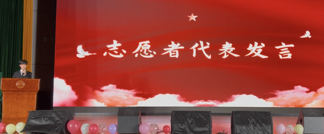 志愿者代表 向陽(yáng)花開(kāi)支教隊(duì)法學(xué)24404班錢坤同學(xué)發(fā)言
