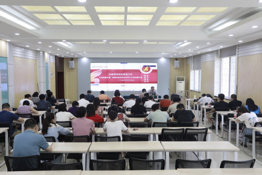 本網(wǎng)訊(通訊員 邢宇)7月3日下午,學(xué)院黨委書(shū)記鄧志華在法商樓111室講授學(xué)習(xí)貫徹習(xí)近平新時(shí)代中國(guó)特色社會(huì)主義思想主題教育專題黨課。學(xué)院領(lǐng)導(dǎo)班子成員、全體中層干部、各黨支部書(shū)記參加,其他師生黨員通過(guò)線上方式共同聆聽(tīng)。