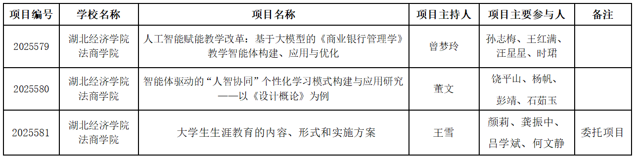 本網(wǎng)訊(通訊員 胡文紅)近日,省教育廳發(fā)布了《關(guān)于公布2025年湖北本科高校省級教學(xué)改革研究項目的通知》(鄂教高函〔2025〕17號),我院3個項目獲批立項。