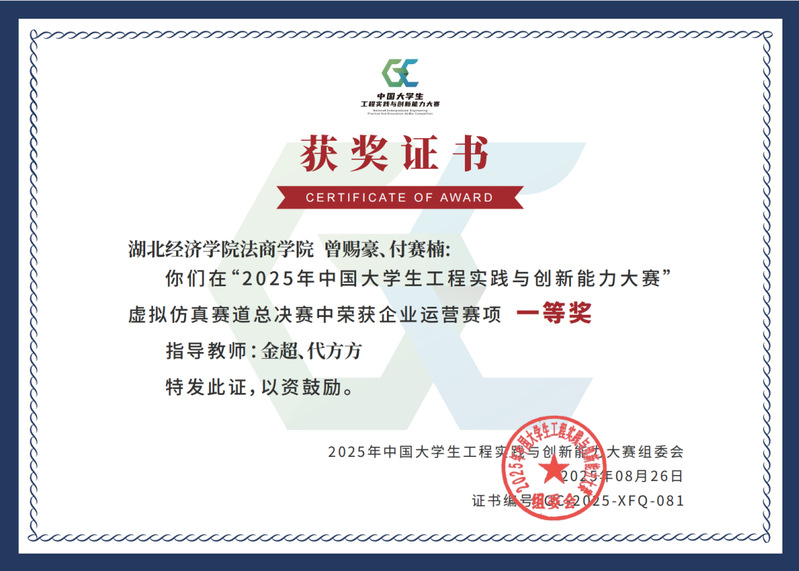 【奮斗的法商人】熊云鶴獲第9屆中國大學生...