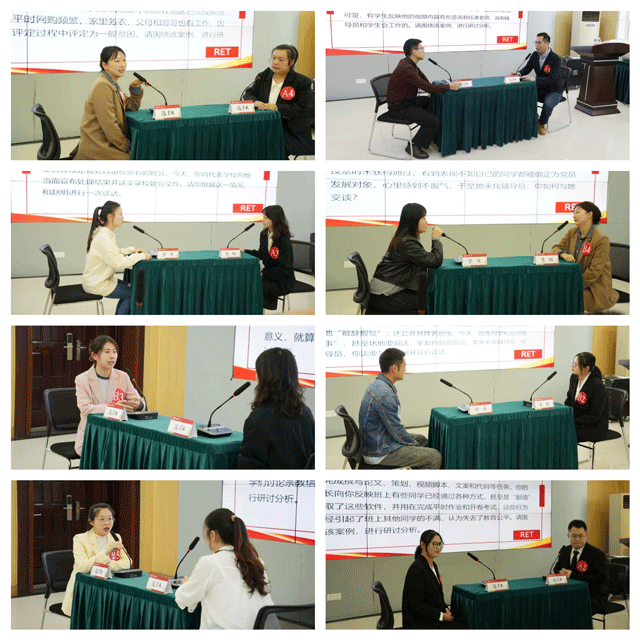 本次決賽流程和規(guī)則嚴(yán)格對(duì)標(biāo)省賽標(biāo)準(zhǔn),設(shè)置案例研討和談心談話兩個(gè)環(huán)節(jié),采用AB角互動(dòng)模式進(jìn)行比拼。案例研討環(huán)節(jié),選手們圍繞學(xué)業(yè)幫扶、心理疏導(dǎo)、危機(jī)干預(yù)等典型工作場(chǎng)景,通過(guò)交互問(wèn)答深入剖析問(wèn)題根源、探討解決方案,展現(xiàn)出扎實(shí)的理論功底與協(xié)同處置能力。談心談話環(huán)節(jié),通過(guò)情景模擬,綜合考察輔導(dǎo)員面對(duì)各類學(xué)生問(wèn)題時(shí)的溝通能力、共情能力與育人智慧。